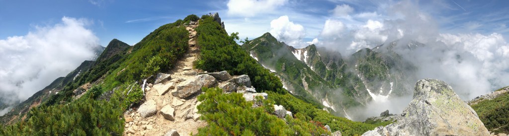 Sunburn in the Japanese Alps – you don’t even feel it, but by the time you’re off the mountain, over the afternoon, you’re going to ripen like a succulent, summer cherry. Sitting in the village foot onsen later that afternoon, I looked down at my legs in dismay. The stop at the icy river on the way home is now a mandatory one. Sunscreen everywhere. Or long clothes.