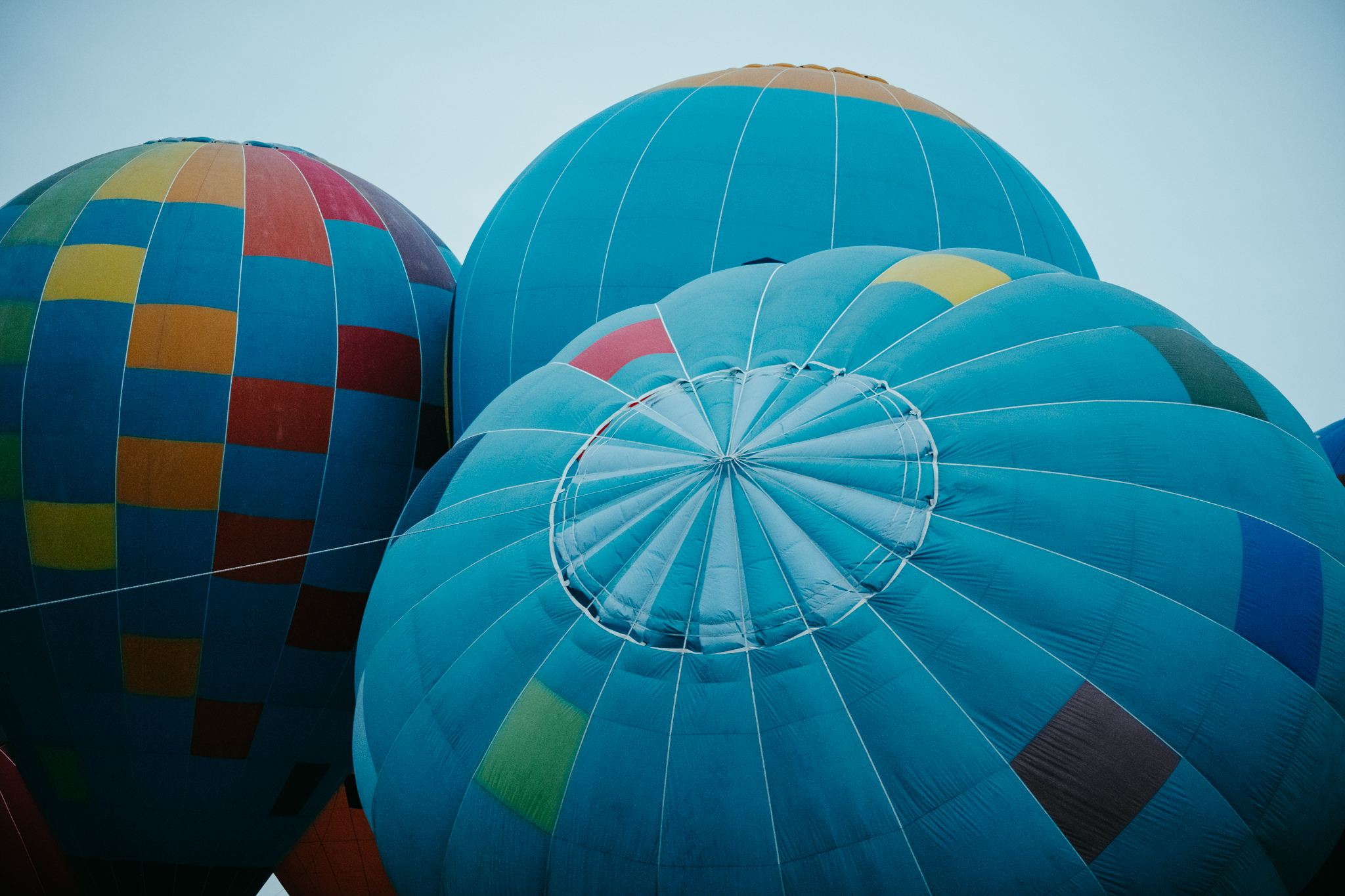 Mia had landed the balloon standing, to make it easier for her crew to find her, then realised that she had accidentally burnt two of the bottom panels in her concentration. It’s not an uncommon occurrence, and by no means is it really dangerous, but it definitely feels awful when you’re borrowing someone else’s balloon. The mouth of the balloon is constructed of sturdy nylon panels, and the Kubicek balloon Mia was borrowing at the time (from Peter Kubicek himself, in fact) was built of polyester above that; it was two of those panels plus a nylon which had now disappeared.