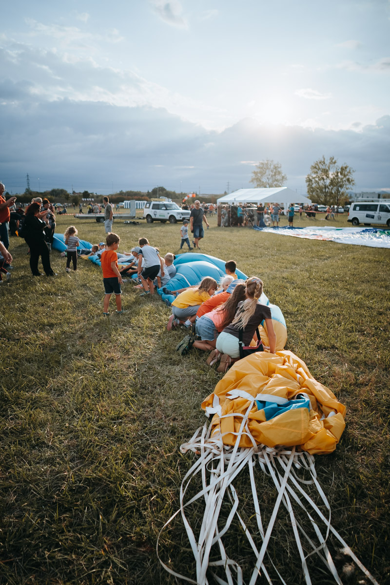 Contrary to popular perception, balloon fabric is extremely fire retardant and won’t catch on fire, but instead just tends to melt away if the heat source is directed at the fabric for a good amount of time. You can get away with flying a balloon with quite a lot of burn damage actually, depending on its position in relation to the balloon’s equator, and exact specifications are located in the Flight Manual – just in case you were interested! In this case, it cost about 650 euros to fix, which is still a good deal cheaper than it would’ve been for Mia to ship one of her own balloons over from Australia.
