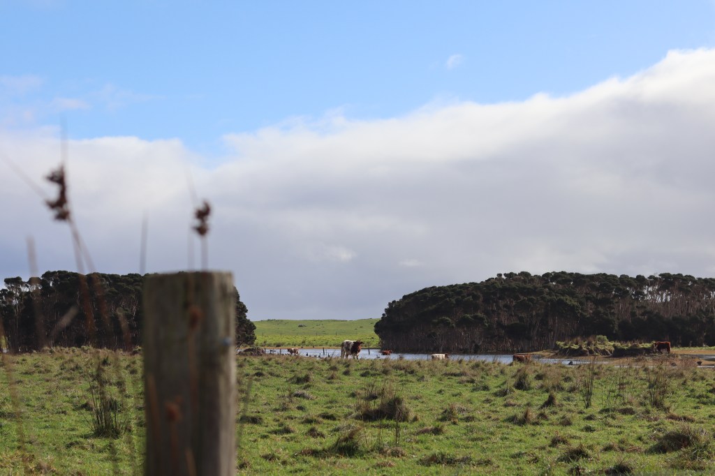 MID: King Island beef frothing life in the paddocks behind the Shag Lagoon Bird Hide