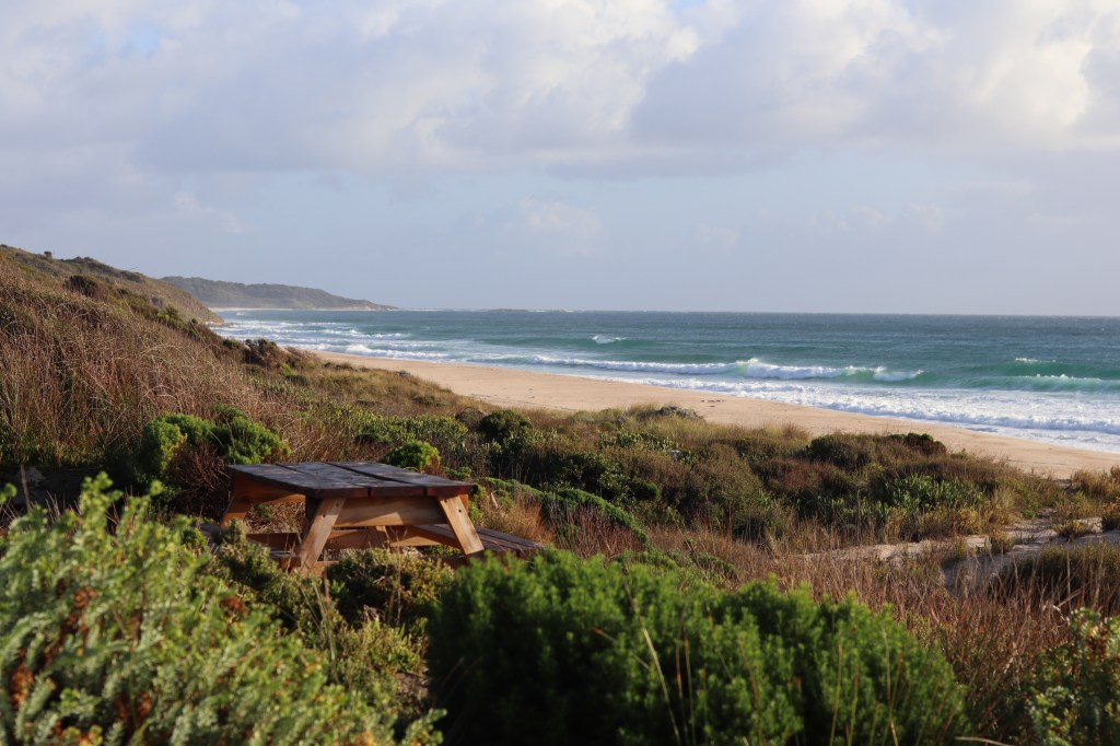 MID: Crisp whites, greens and blues, and the picnic table at Lavinia Beach