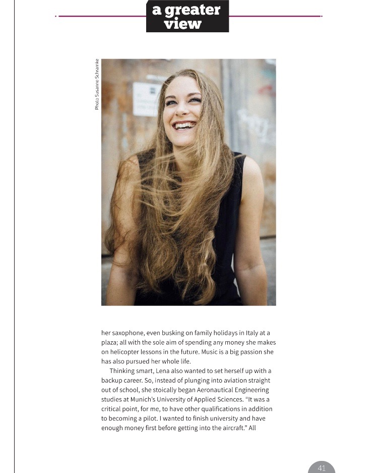 Thinking smart, Lena also wanted to set herself up with a backup career. So, instead of plunging into aviation straight out of school, she stoically began Aeronautical Engineering studies at Munich’s University of Applied Sciences. “It was a critical point, for me, to have other qualifications in addition to becoming a pilot. I wanted to finish university and have enough money first before getting into the aircraft.” All this time, she worked with music right around Europe, performing at significant events and galas in places like Monaco, Portugal, Austria, and Switzerland.
