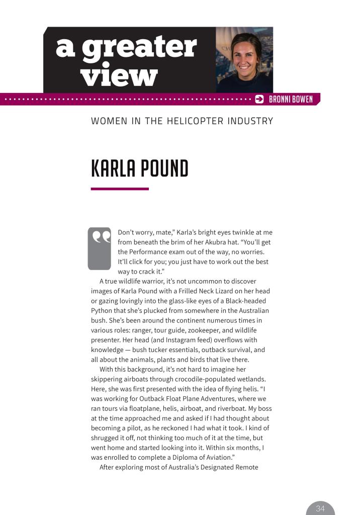 First published in HeliOps Magazine – Issue 135 (Kia Kaha Media) in ‘A Greater View’, a column profiling women in the heli industry
