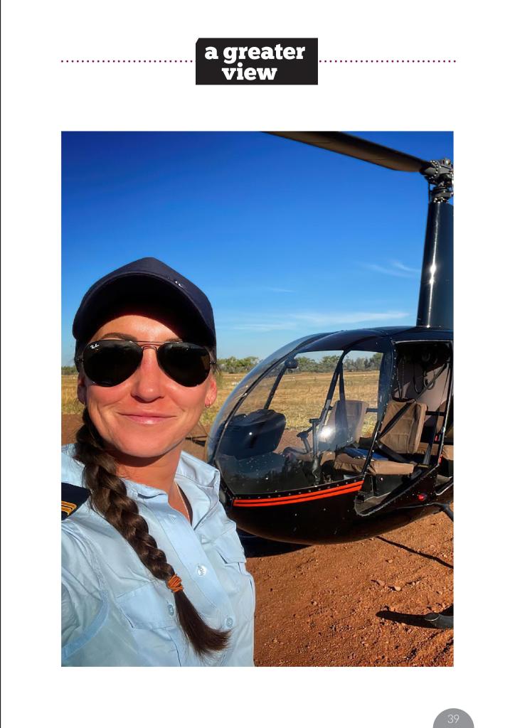 With this background, it’s not hard to imagine her skippering airboats through crocodile-populated wetlands. Here, she was first presented with the idea of flying helis. “I was working for Outback Float Plane Adventures, where we ran tours via floatplane, helis, airboat, and riverboat. My boss at the time approached me and asked if I had thought about becoming a pilot, as he reckoned I had what it took. I kind of shrugged it off, not thinking too much of it at the time, but went home and started looking into it. Within six months, I was enrolled to complete a Diploma of Aviation.”