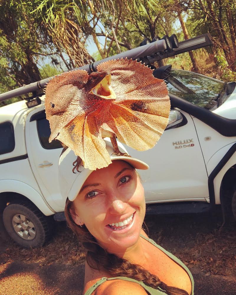 A true wildlife warrior, it’s not uncommon to discover images of Karla Pound with a Frilled Neck Lizard on her head or gazing lovingly into the glass-like eyes of a Black-headed Python that she’s plucked from somewhere in the Australian bush. She’s been around the continent numerous times in various roles: ranger, tour guide, zookeeper, and wildlife presenter. Her head (and Instagram feed) overflows with knowledge — bush tucker essentials, outback survival, and all about the animals, plants and birds that live there.