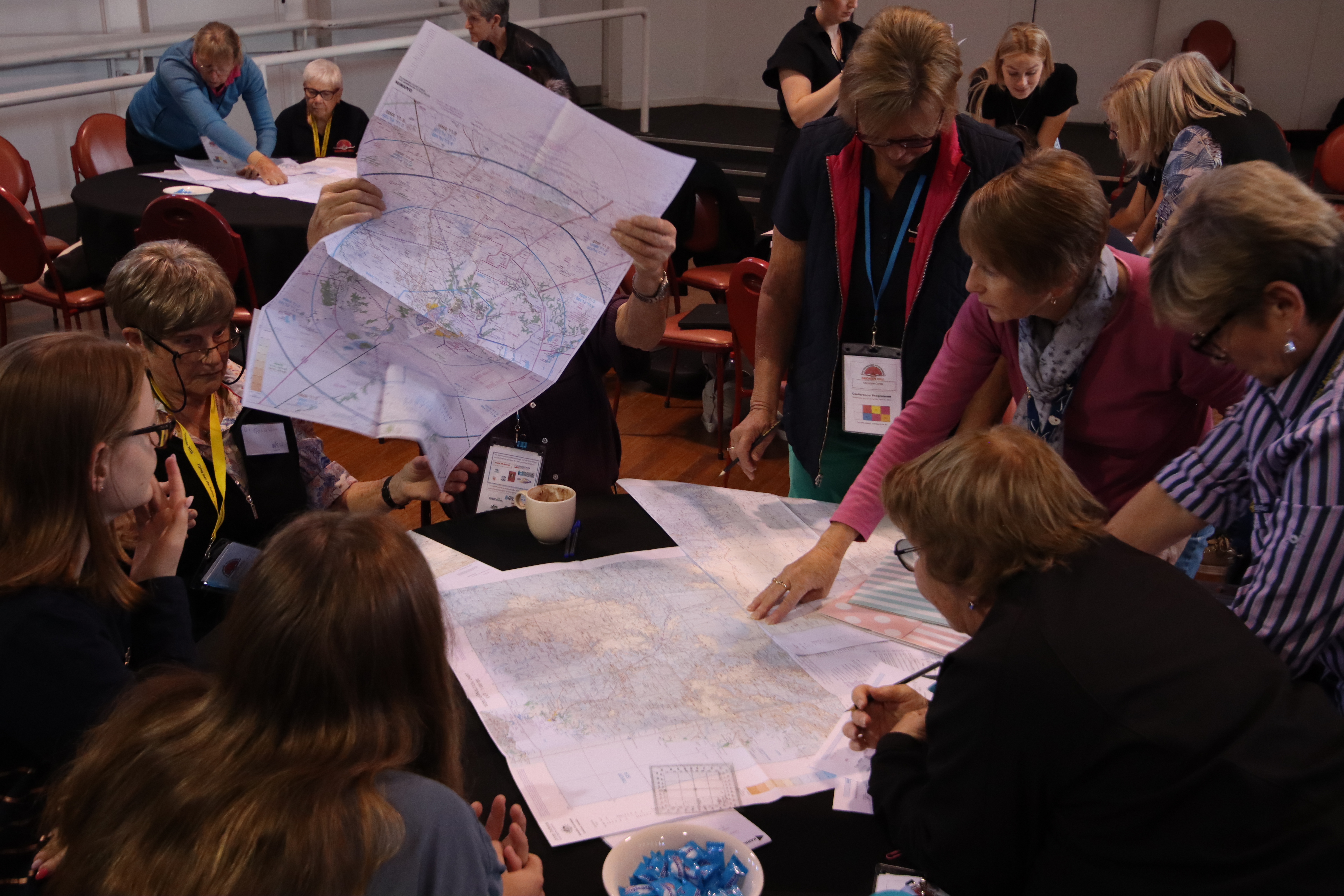 First up, facilitated by the fabulous Shelley Ross and Catherine Fitzsimons, our buzzing room of lady pilots set off on a virtual outback safari – an exercise in the challenges of flying in remote areas. Using sets of maps and tools found on each of our tables, we traversed Australia’s top end, doing our very best to entertain some rather demanding characters (fictional, of course) and squeeze in some unforgettable, imaginary sights at the same time!