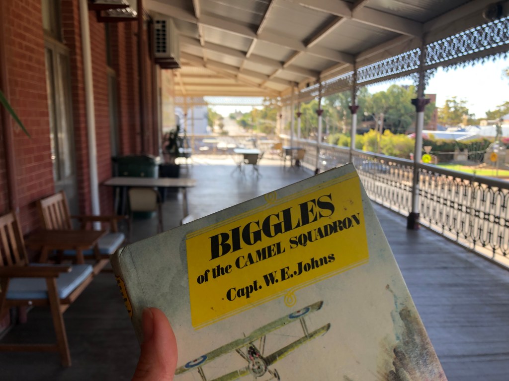 Much to Kath’s disappointment, there are no silver bars here. “Na, they’re not sold anywhere but the Perth Mint these days,” we’re told. Feeling a little deflated, we pay a small entry fee and are suitably impressed by the ‘Big Picture’, which – without giving too much away – is precisely what it says. Instead, I strike gold a little later in the afternoon in a secondhand shop on the edge of town: four Biggles books from various publishing houses and eras – a couple of them quite rare! I’m rapt and spend the rest of my afternoon with my nose buried in one out on the Palace’s sprawling verandah.