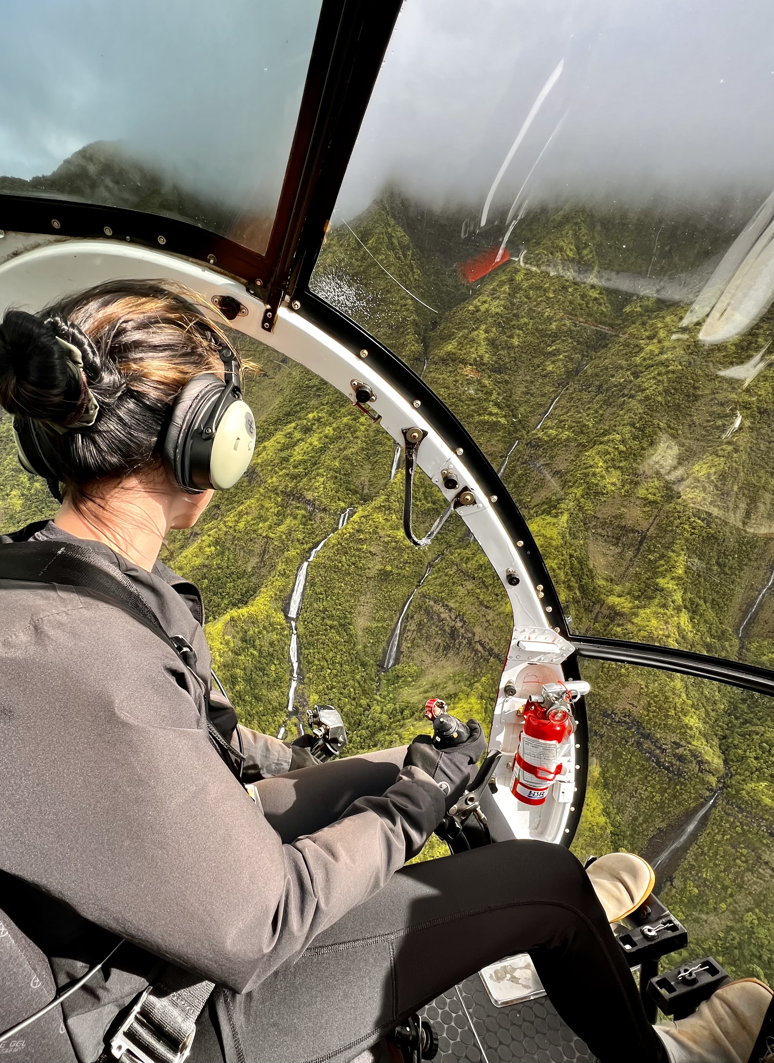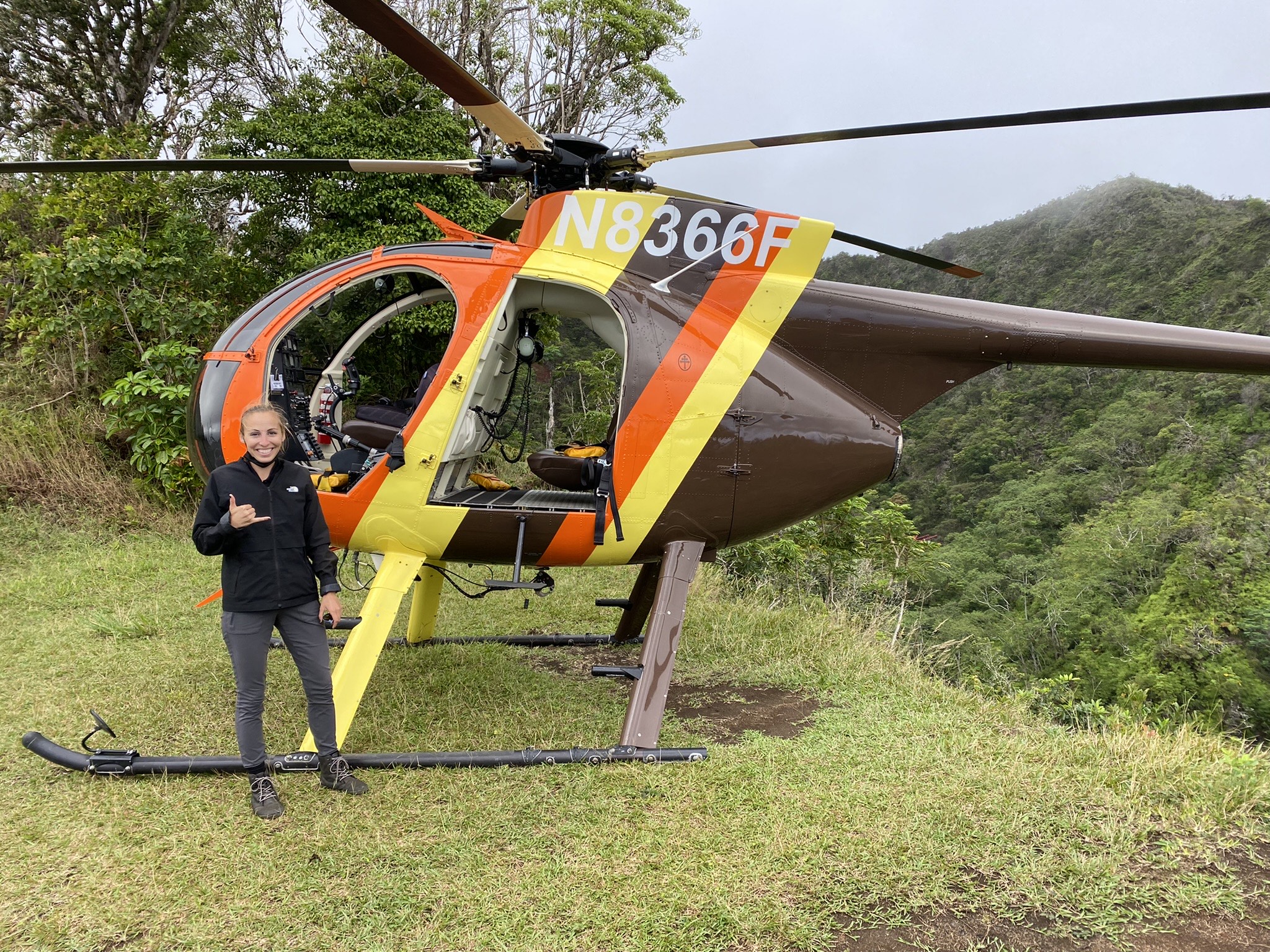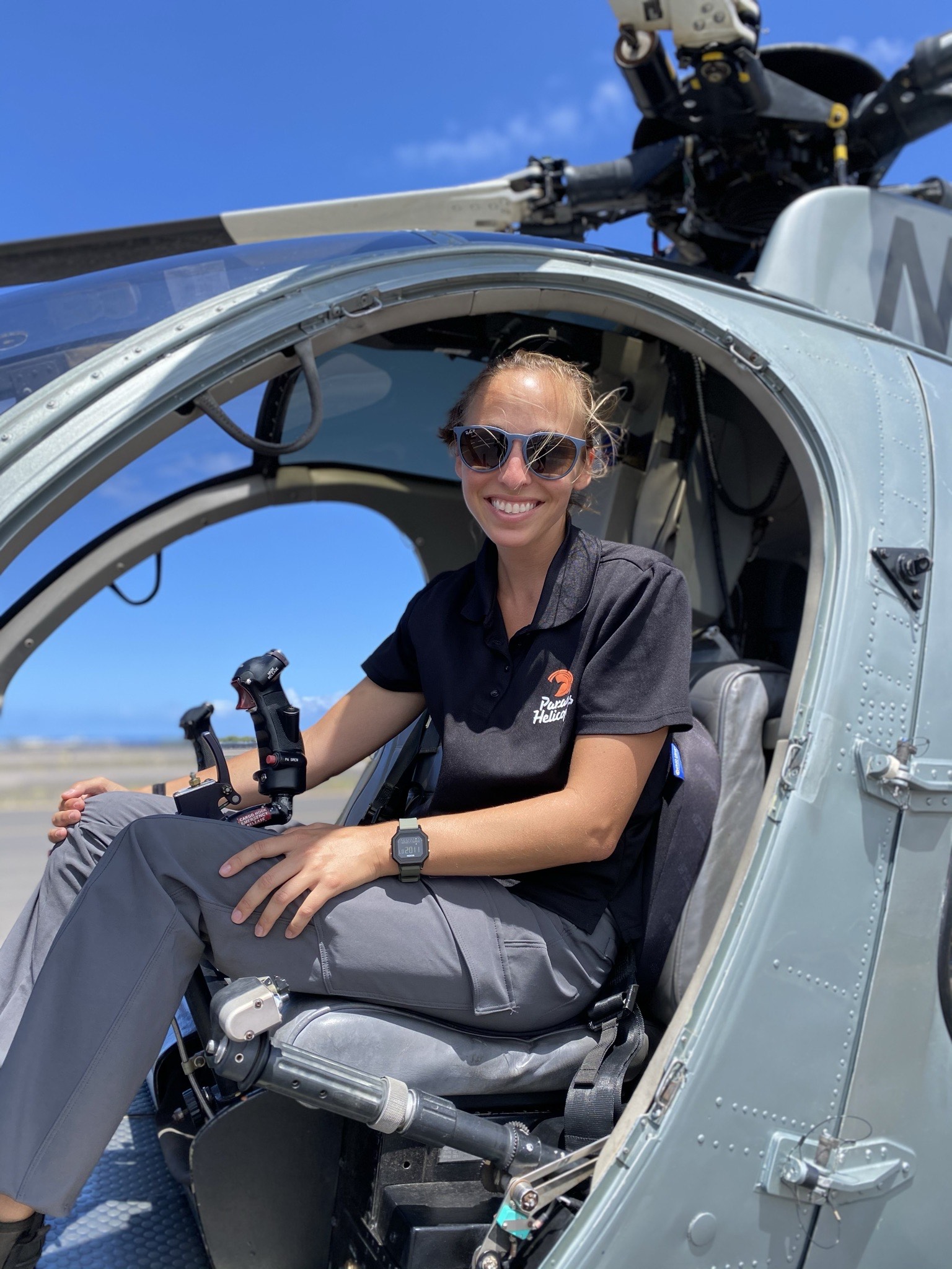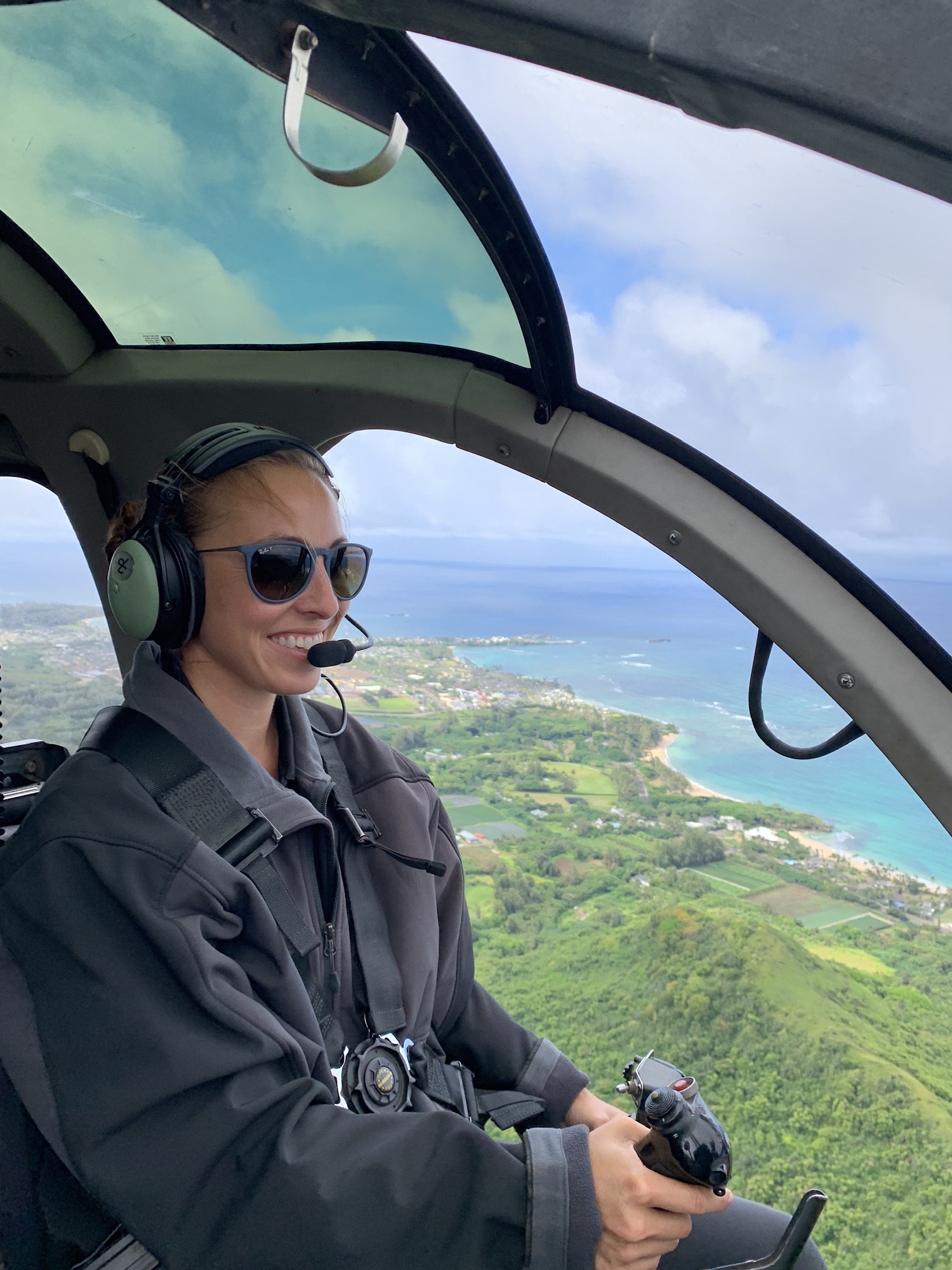 After five months in Kona, Tianna returned to Oahu and continued her job instructing. Soon after, she was offered the assistant chief pilot position and began flying tours. Tianna worked for Mauna Loa Helicopters for just over two years.