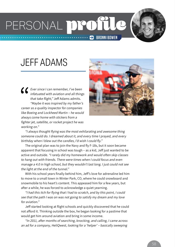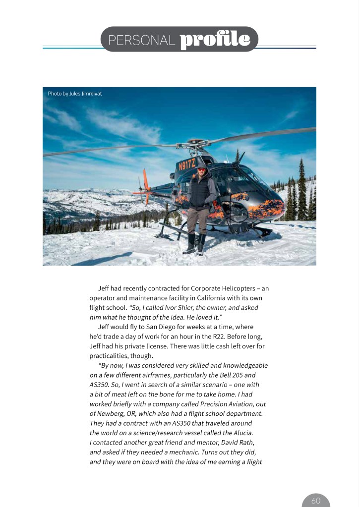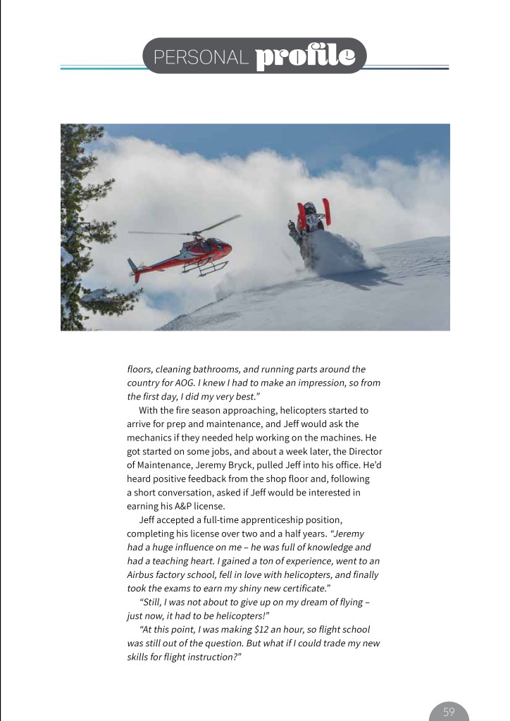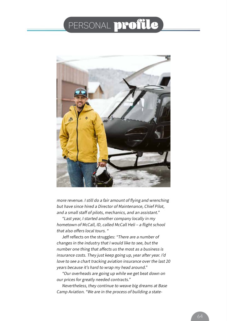 “Last year, I started another company locally in my hometown of McCall, ID, called McCall Heli – a flight school that also offers local tours. ”