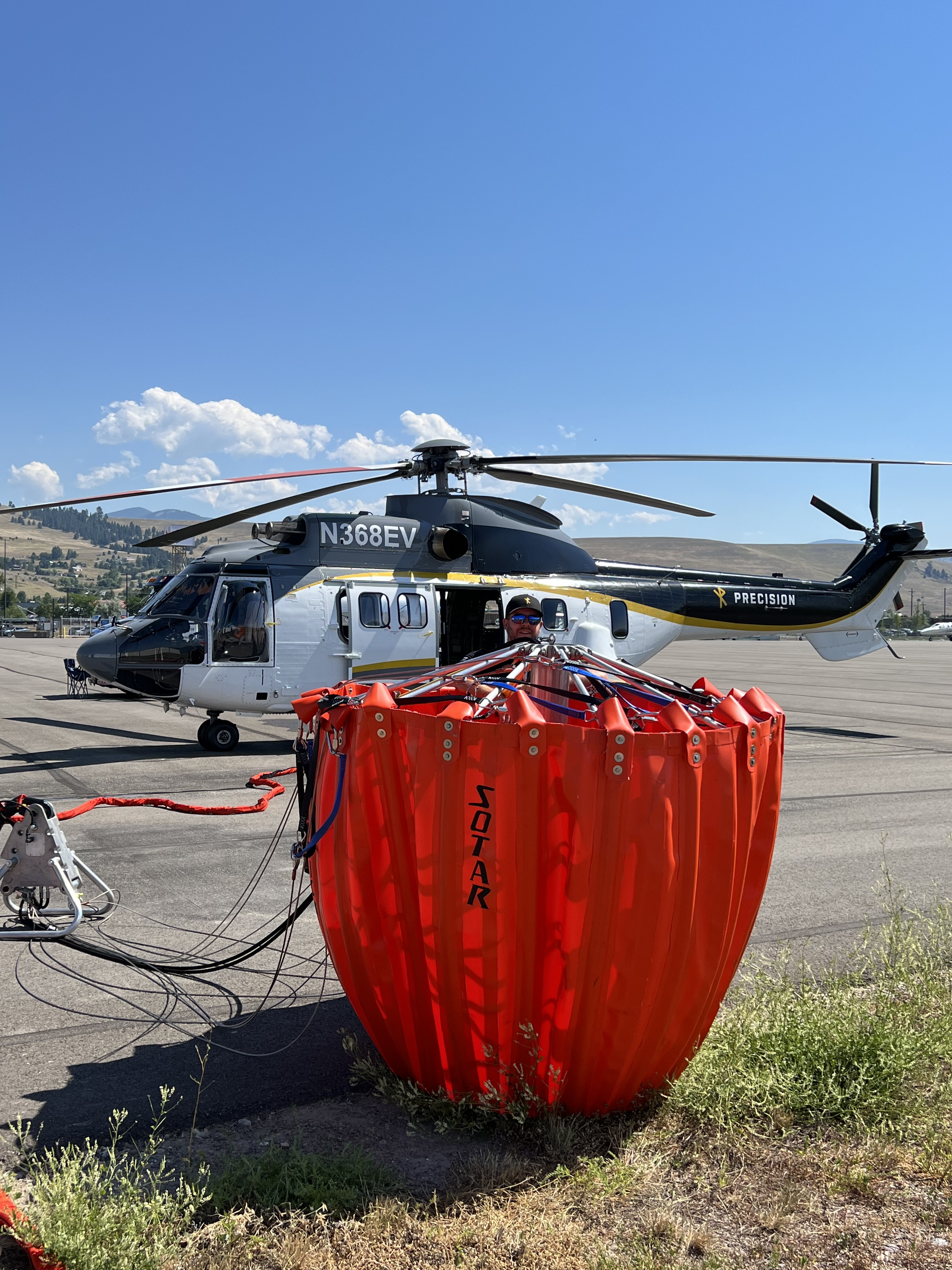 With no time to ship the machines, Precision flew two Super Pumas from McMinnville, OR, all the way to South America. “We took it as an opportunity to get some of our pilots a nice chunk of time in the Super Puma – around 50 hours flying each way.” It was a hectic event, and the machines flew around 205 hours across 45 days. Lifting thousand-gallon buckets, that’s a substantial amount of water hitting the fire fronts.