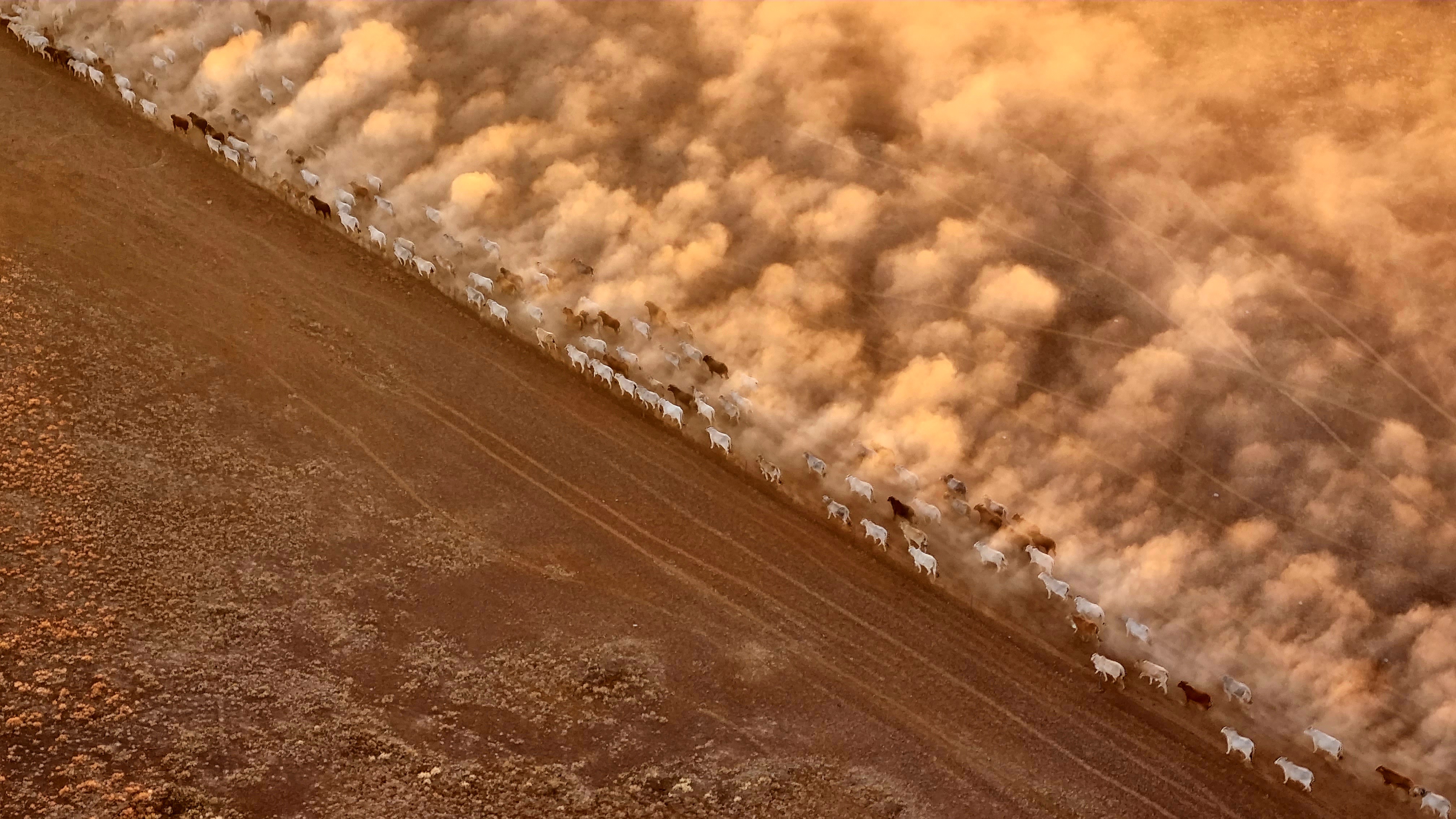 Kingsley wheels in the sky alongside flocks of Kites and other birds of prey, stirred up by churning rivers of cattle with long curtains of bulldust streaming away to the side. These are scenes he also loves to capture through the lens of his camera – and he’s as good a shot as he is a pilot.