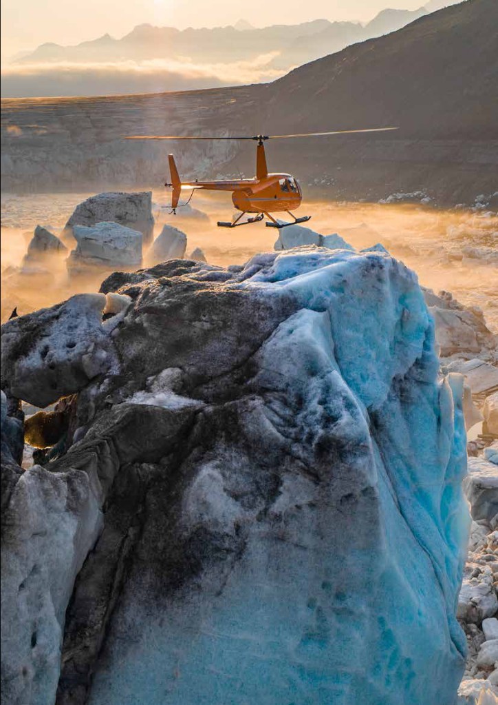Summers are spent in Valdez with her boyfriend, Mike, exploring by helicopter. “We like to go check out old mines, beach comb, look for wildlife, keep an eye on the glacier changes, and have mountain top picnics. I fly a drone, and we do ridgeline heli hikes.” In the winter, they load up the Bell 505 and travel North America. “We bought it brand new from the factory in Mirabel near Montreal and spent three months flying it home the long way – all the way to the Dominican Republic and everywhere in between.”