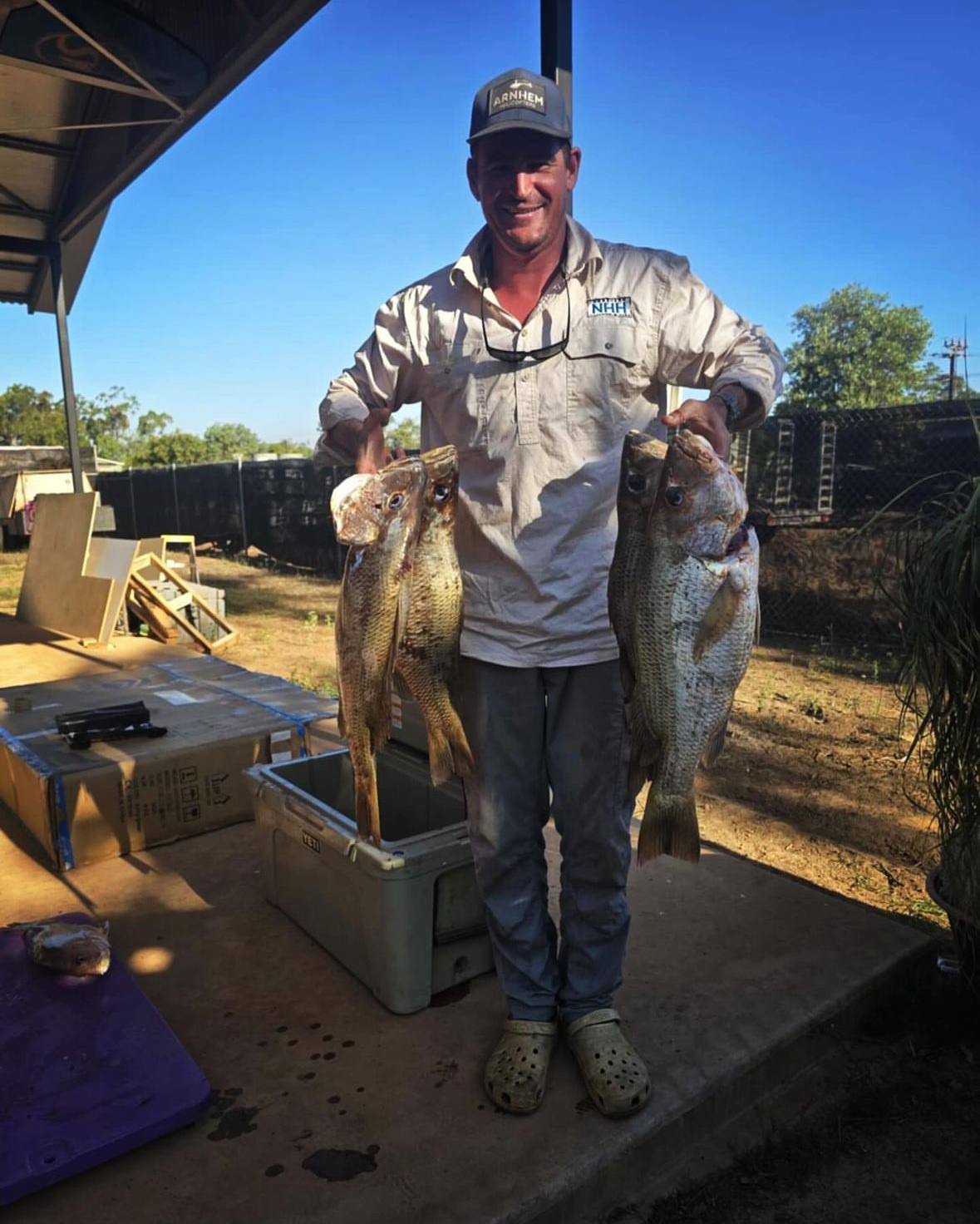 Jez is the picture of a Northern Territory heli pilot. Tall, tanned, and perfectly at home in his bone-coloured workshirt, a pair of Crocs on his feet, and an Arnhem Helis cap pushed back on his head, he’s a mad keen fisherman and hunter – fortunately, quite capable of sourcing his food if required. Being here suits him down to the ground.