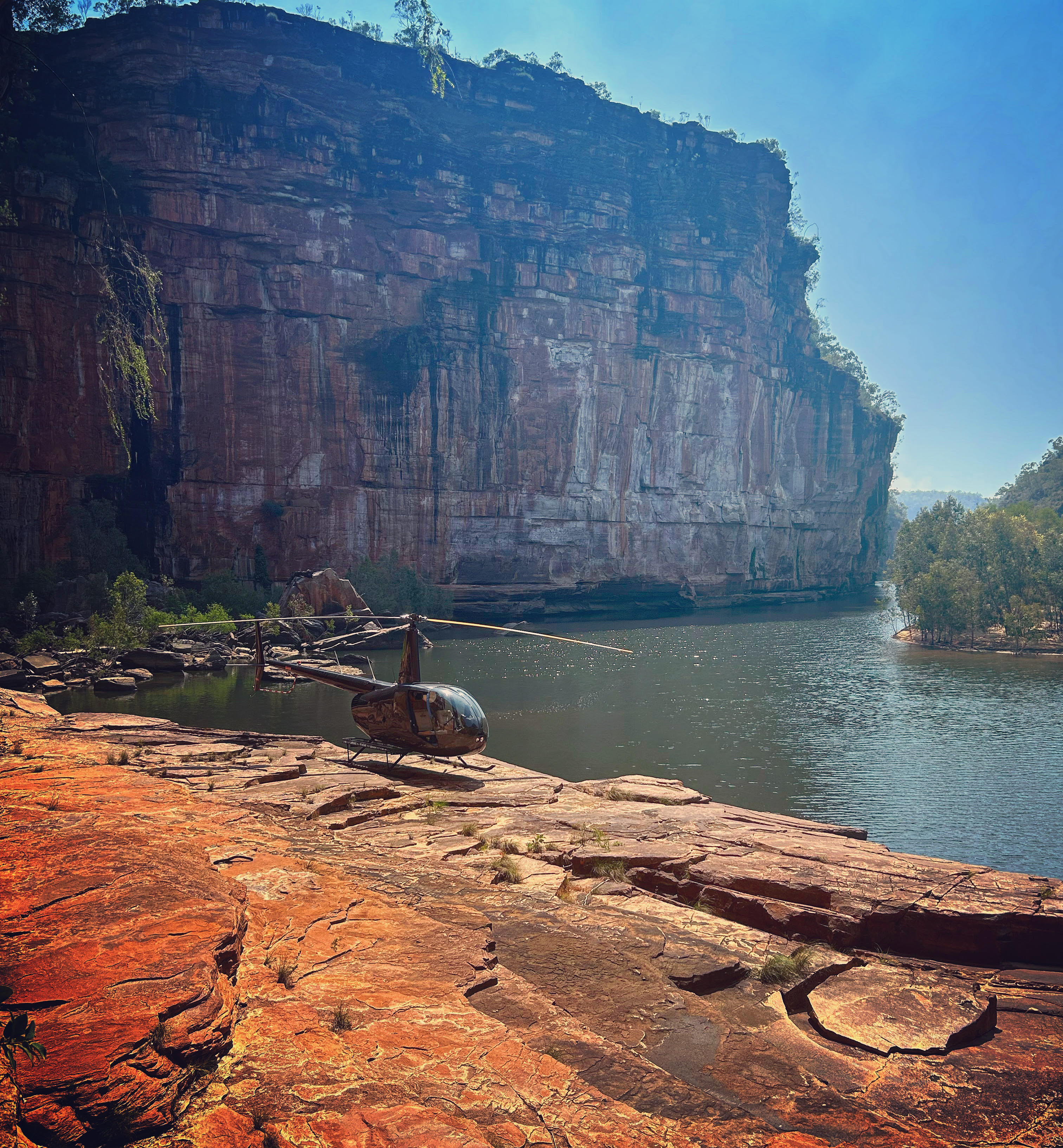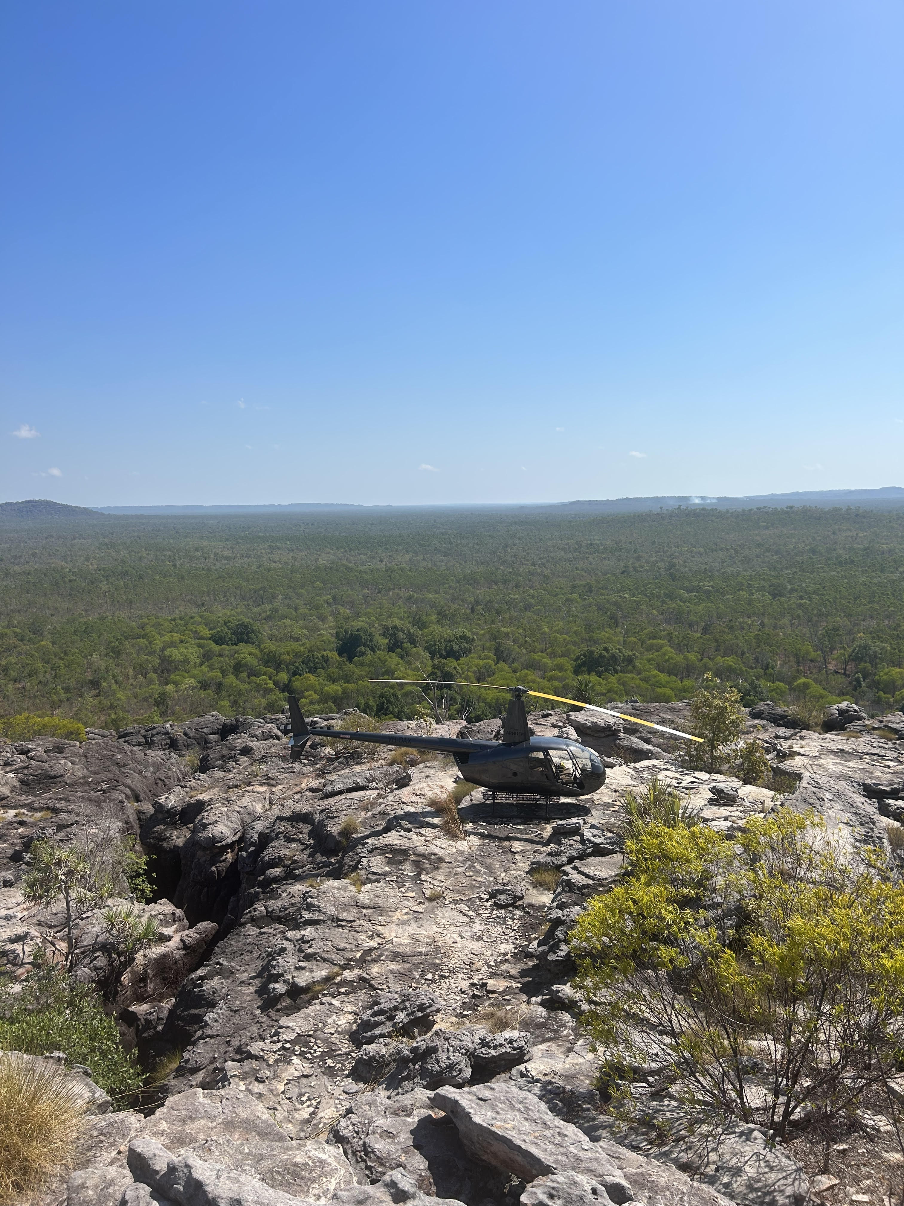 Today, Jeremy flies for a family-owned company based in Darwin in Australia’s Northern Territory, running a fleet of Robinson aircraft: three R44s and one R66. Arnhem Helicopters services the whole of Arnhem Land, working alongside Traditional Owners and rangers of different local groups and clan states. It’s all Aboriginal land, and the landscape varies dramatically – everything from savannah woodlands to stone country; big, steep gorges with megaliters of water flowing over massive falls. There are very few roads, so helis are essential for transport and access.
