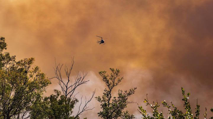 “Often, we’ll fly out in the morning, the rangers with backpack blowers, and they’ll get out and blow a break back into the fire to pull it up. Those blowers are powerful, so they’ll blow back a couple of meters. Or we’ll back-burn downwind. Sometimes, they’ll drag tires in a line across the fire front, too, that’ll often slow it down. We do have a bucket for the 44; it’s alright for spot fires, but not really anything bigger.”