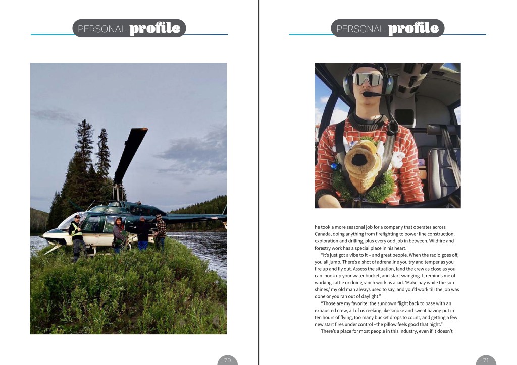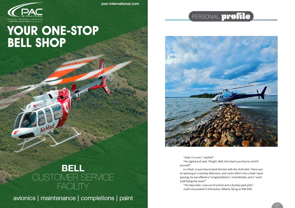 Justin: This industry isn’t for everyone. I think you have to be a particular type of person and a little bit crazy to get into the helicopter business, especially for the VFR bush flying that interests me. But more than anything, I believe that to make a career of this, you have to have a passion and a drive for it. It’s a rough road full of challenges to get going and make it, and it’s not worth it unless you have a drive inside of you that makes you NEED to do this.