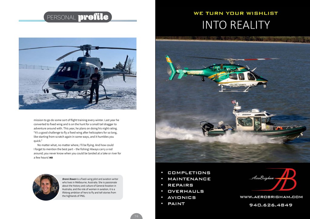 BB: Have any other individuals influenced you or … any comment on people and culture in the helicopter industry? Alternatively, are there any highlights or rocky bottoms you’ve experienced during life you feel you’d like to share?