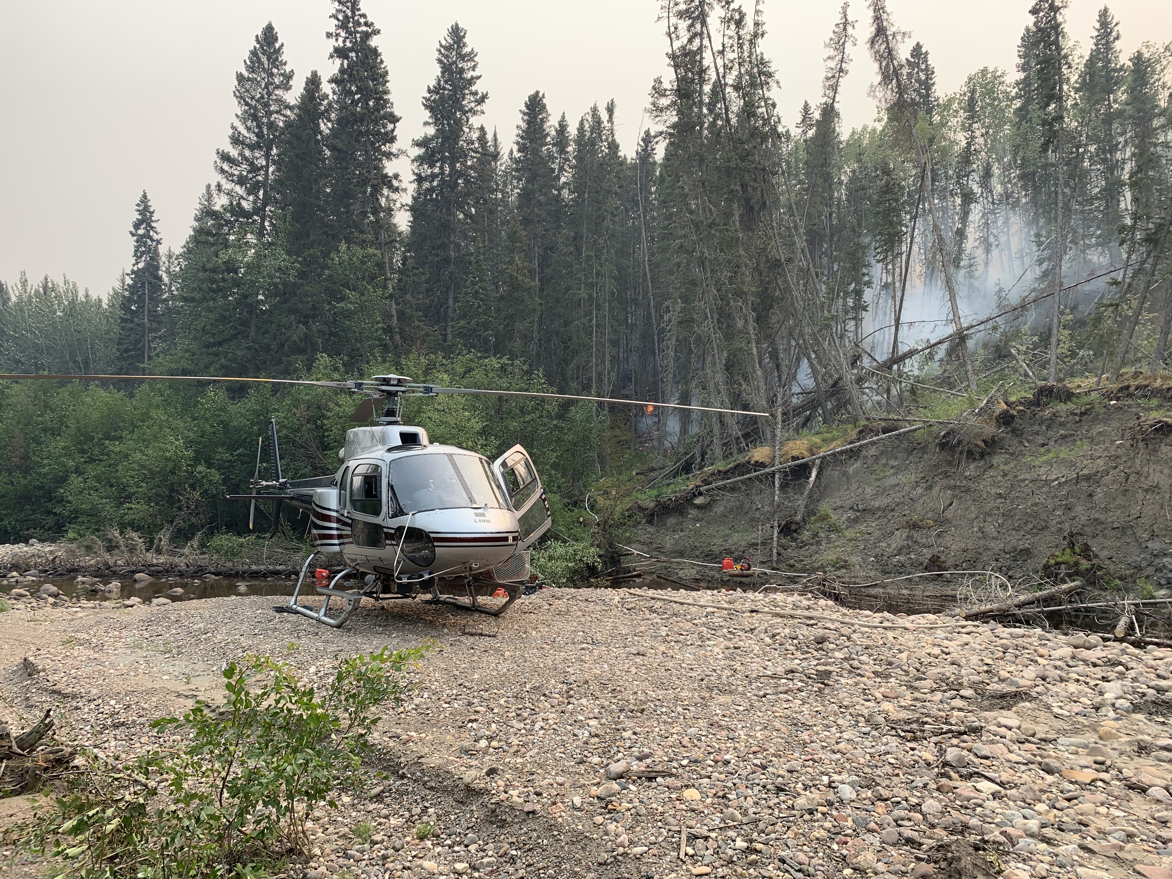 Wildfire/forestry work is some of my favourite. It’s just got a vibe to it, and great people. In Alberta, we have helicopters on call with a four-person crew, called Initial Attack, for a quick response to fire calls. Usually, you sit on a five-minute call-out time if the fire risk is high, so you hang out with the crew near the machine – and when the radio goes off, you all jump. There’s a shot of adrenaline you try and temper as you fire up and fly out; assess the situation, land the crew as close as you can, hook up your water bucket, and start swinging. It’s really hand in hand with your crew, and by jumping on it early, every minute is a higher chance of getting it under control or extinguished by sundown, and lots of times, that’s how late it goes.