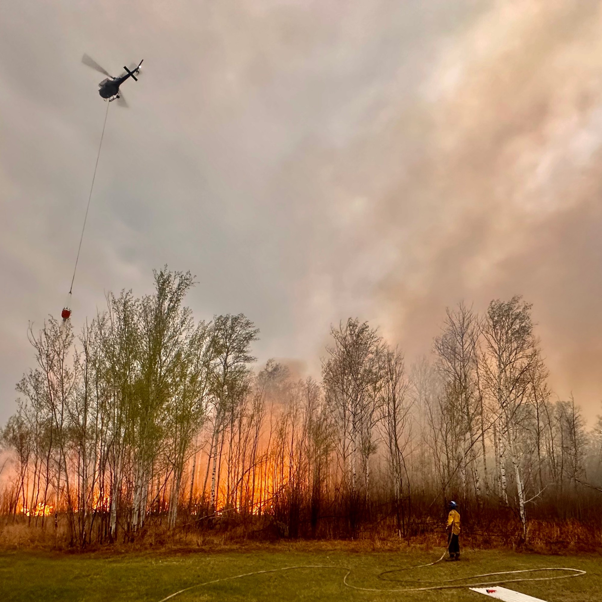 One memorable day, I was in northern Canada working with a couple of crews, mopping up a smoldering fire. On the flight back to base around 5 pm, we found a new fire at a small village; it’d already burned through three houses and was on the front porch of the fourth. I dropped my crew, hooked up my bucket, and took off. With the time of the day and the remote nature of the location, we had no other helicopters able to make it there in time to help, and more ground crews were hours away. I flew until last light and dropped over 100 bucketloads of water. We limited the fire to only taking those houses and landed at the base with 12 hours of fight time for the day.