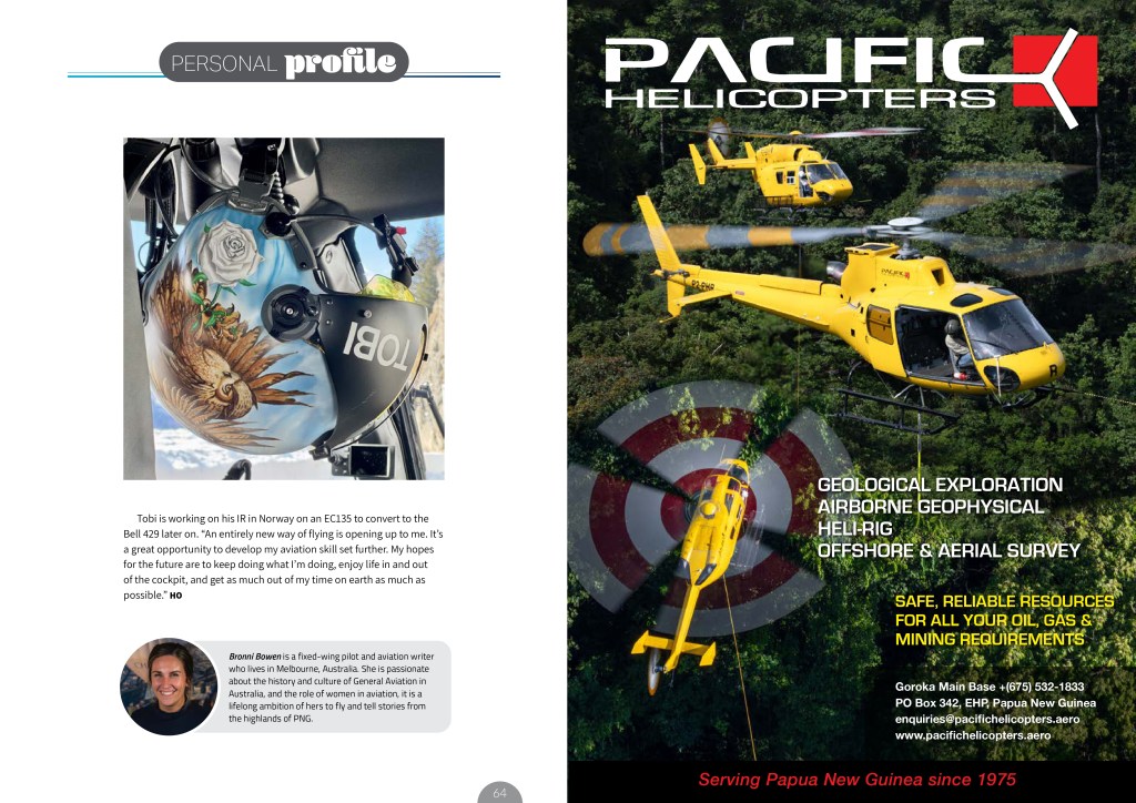 Tobi is working on his IR in Norway on an EC135 to convert to the Bell 429 later on. “An entirely new way of flying is opening up to me. It’s a great opportunity to develop my aviation skill set further. My hopes for the future are to keep doing what I’m doing, enjoy life in and out of the cockpit, and get as much out of my time on earth as much as possible.”